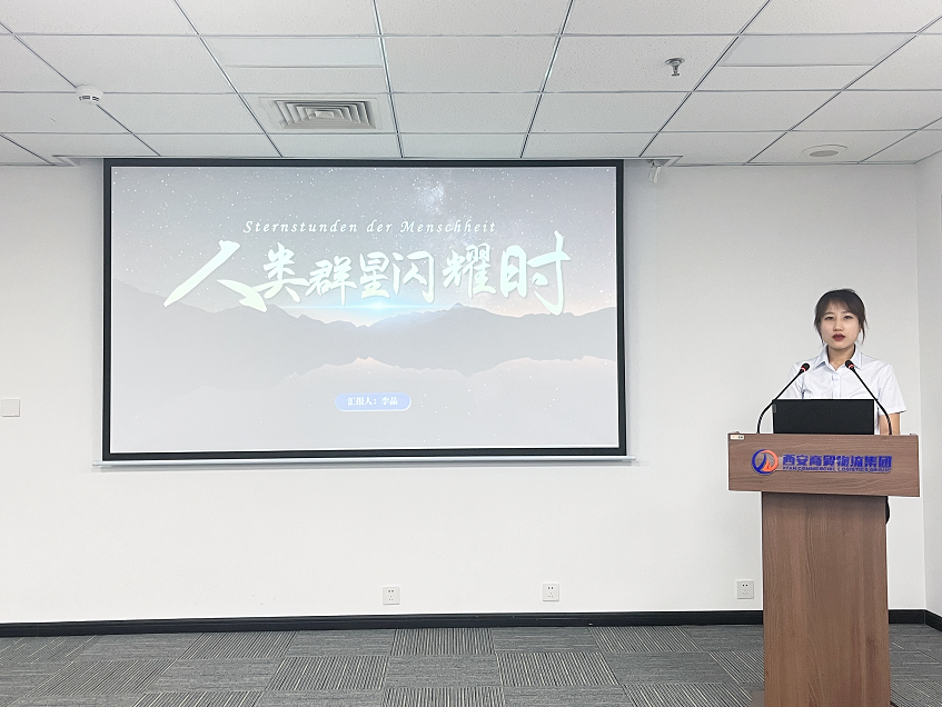 企劃部李晶分享了《人類群星閃耀時》:“書中以詩人的筆觸和史學家的眼光,展現(xiàn)了個人在歷史洪流中的渺小與偉大,傳遞出‘在困境中不放棄,勇于挑戰(zhàn)自我,挖掘自身潛力’的奮斗精神。”