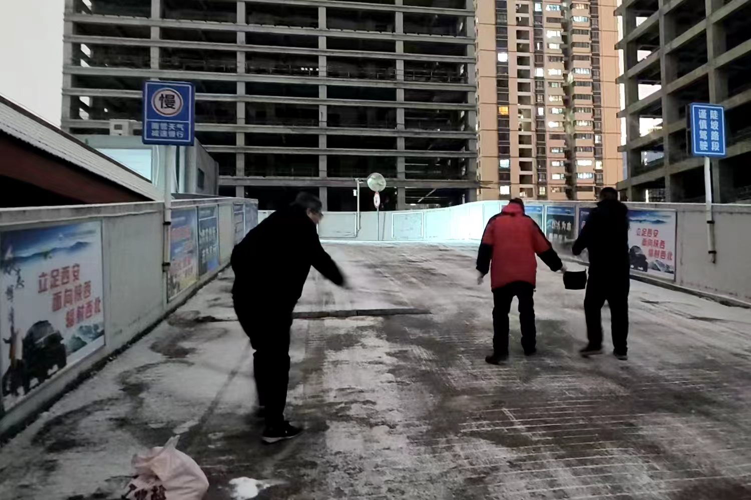 堅(jiān)守初心,服務(wù)商戶。在除雪過(guò)程中,職工們逐戶提醒商戶做好門(mén)前防滑,協(xié)助搬運(yùn)貨物,并在重點(diǎn)路段鋪設(shè)防滑墊、設(shè)置警示標(biāo)識(shí)。一位商戶感慨道:“這么冷的天,市場(chǎng)職工幫我們把通道清理得干干凈凈,還想著我們的安全,真是太暖心了!"